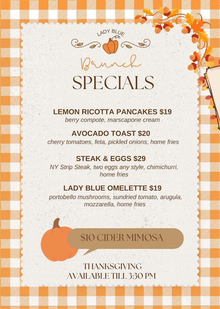 Join us post-parade for a boozy brunch & enjoy some Thanksgiving classics. Available from 11am till 3:30 pm.